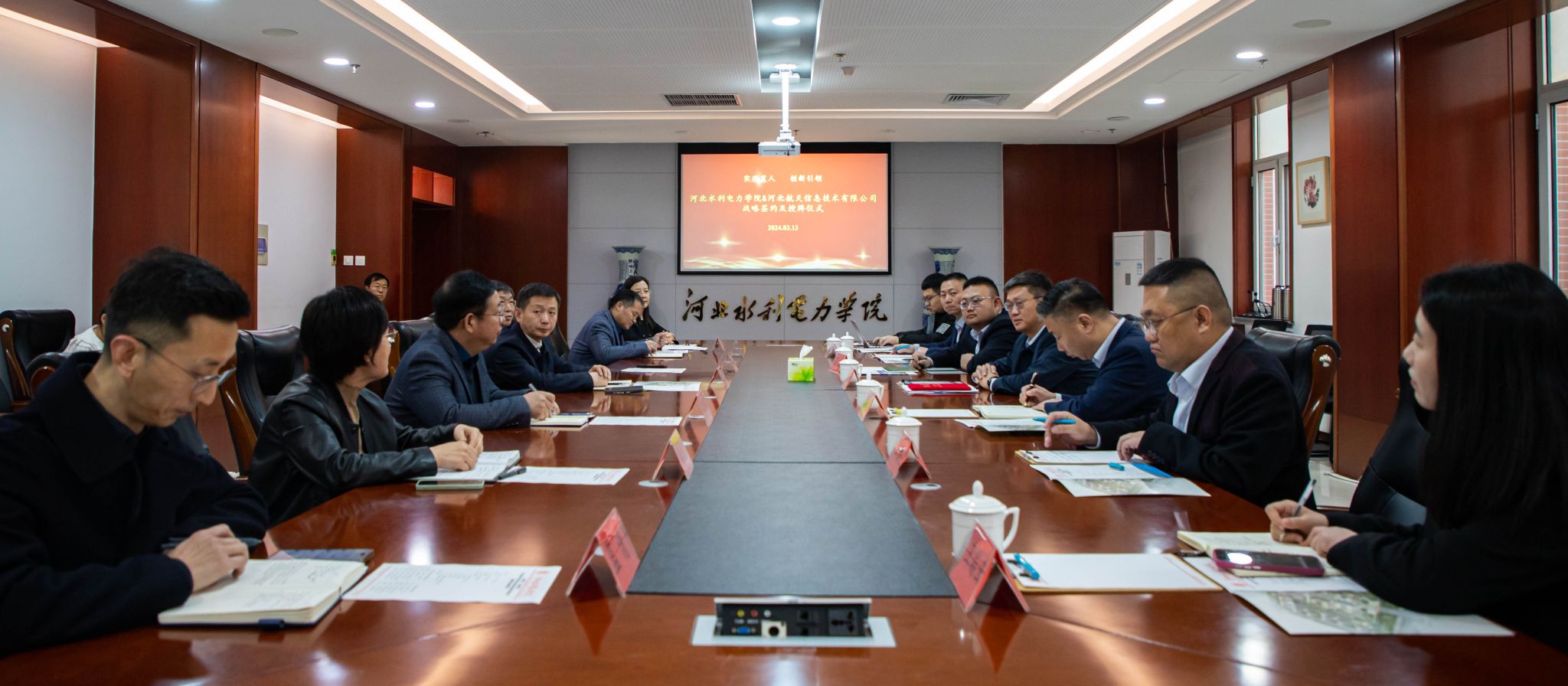 3月13日上午,我校在弘文守正楼11层会议室与河北航天信息技术有限公司举行校企合作战略签约及授牌仪式。党委副书记、校长王滨,副校长于振海,公司董事长李明权、总经理助理马玉杰及我校计算机系、经贸系、科技处主要负责人等校企双方相关人员出席仪式,仪式由副校长于振海主持。王滨对河北航天信息技术有限公司领导一行表示热烈欢迎,他从建校历史、发展历程、优势专业、人才培养等方面介绍了学校基本情况,他指出,校企双方有着良好的合作基础,...