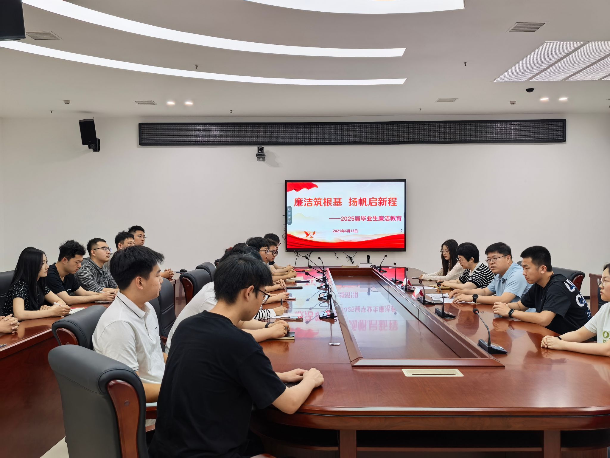 为进一步做好毕业生的廉洁教育,引导学生筑牢廉洁从业的思想根基,6月13日上午,学校纪委举办2025届毕业生专题廉洁教育会,纪委书记鲁增秋出席会议并讲授廉洁教育课,纪委副书记李昕欣主持会议,各系考取公务员和事业单位的毕业生代表参加会议。学校纪委面向2025届毕业生进行廉洁教育鲁增秋以《系好廉洁从业“第一粒扣子”》为题,为毕业生上了一堂精彩的廉洁教育课。他语重心长地对青年学生提出了明确要求,给予殷切希望。他强调,...