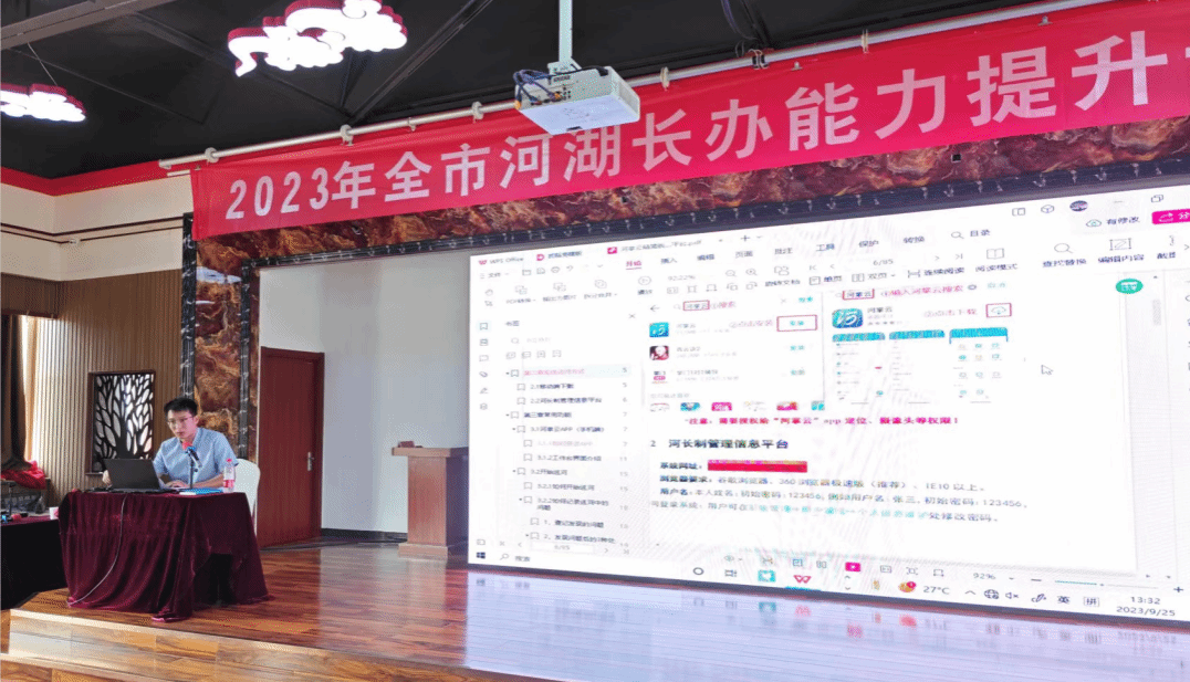 沧州市水务局党组成员、副局长牛保根,河海大学教授唐德善、沧州市河长办办公室主任邢春江、威客电竞(vk·game)·电子竞技赛事官网,继续教育中心主任宋朝峰等领导和嘉宾出席会议并在主席台就座。参会人员有市河湖长制办公室工作人员,21个县(市、区)河湖长制办公室分管负责同志、科室负责同志及乡镇从事河湖长制工作人员等,共计七十余人。