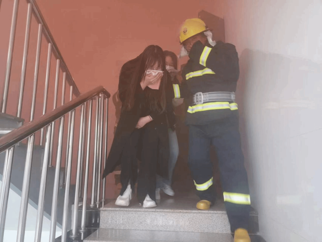 欧仁辉向学校火灾疏散逃生演练指挥部汇报后,学校启动应急预案,综合协调组、灭火行动组、疏散引导组、安全警戒组、医疗救护组、后勤保障组和宣传工作组立即行动,迅速处置。在各组的共同努力下,全部学生被顺利疏散到楼下,火灾也被迅速扑灭,清点好疏散人数后,火灾疏散逃生演练结束。