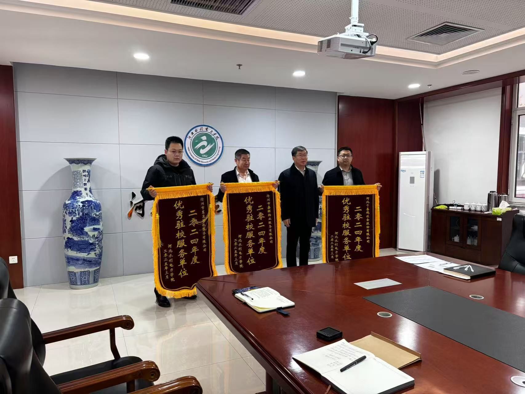 2月25日,我校在弘文守正楼1102会议室召开2024年度优秀驻校服务单位及服务育人先进表彰会。副校长于振海出席会议并讲话,各驻校服务单位监管部门负责人、各驻校服务单位负责人、服务育人先进个人代表、服务育人示范岗代表参加会议,会议由后勤管理处处长周学增主持。