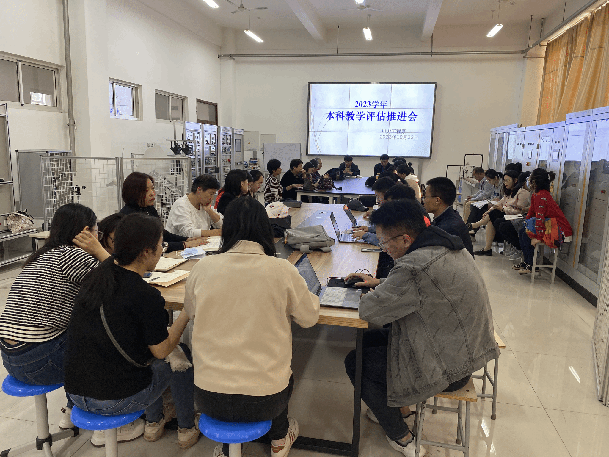 为扎实做好本科教学合格评估工作,提升教学水平和质量,电力工程系于10月22日下午召开了本科教学评估工作推进会,会议由系主任李文才主持,系党总支书记陈恩增与全系教职工参加了本次会议。