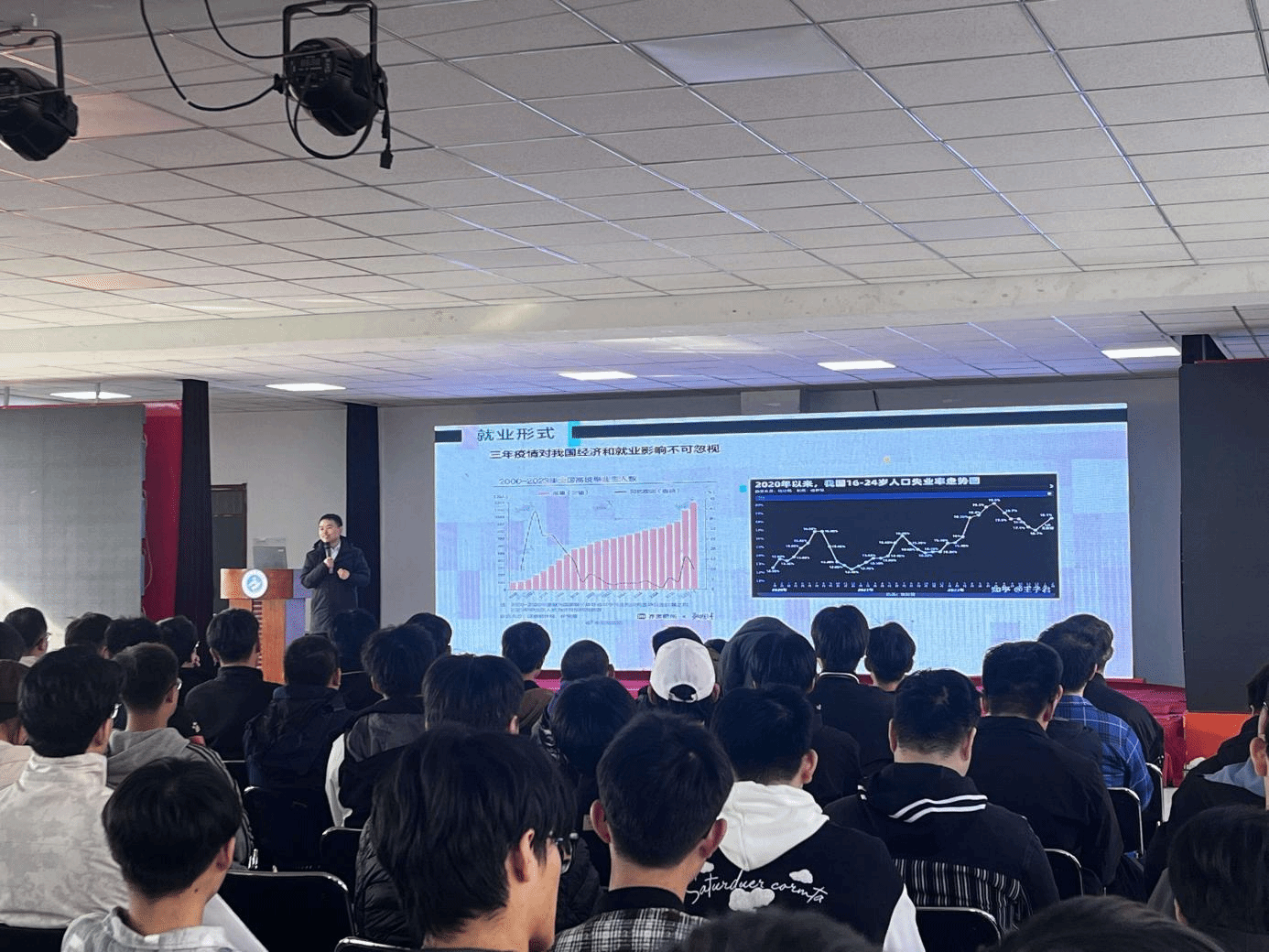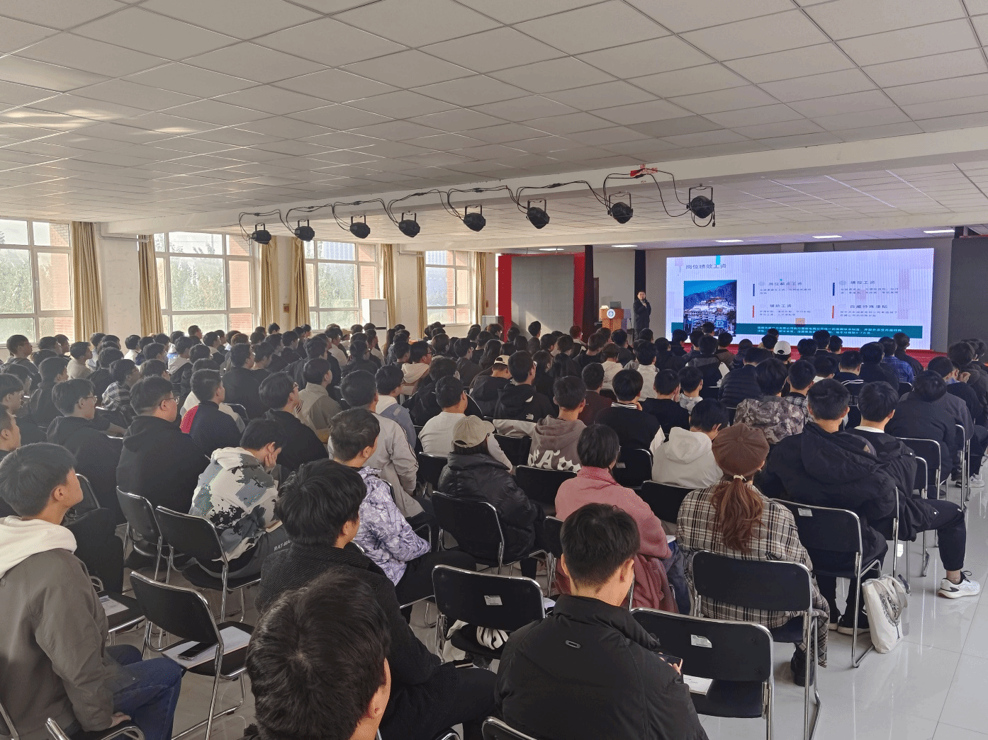 张局长首先就西藏的文化底蕴、企业背景、企业文化、发展前景以及对员工的管理文化等方面进行了详细宣讲,对报名、笔试、面试、确定录取意等报考流程进行了重点介绍,同学们对国家电网西藏电力公司兴趣浓厚,很多同学对自己关心的问题进行了现场提问,宣讲现场热火朝天。