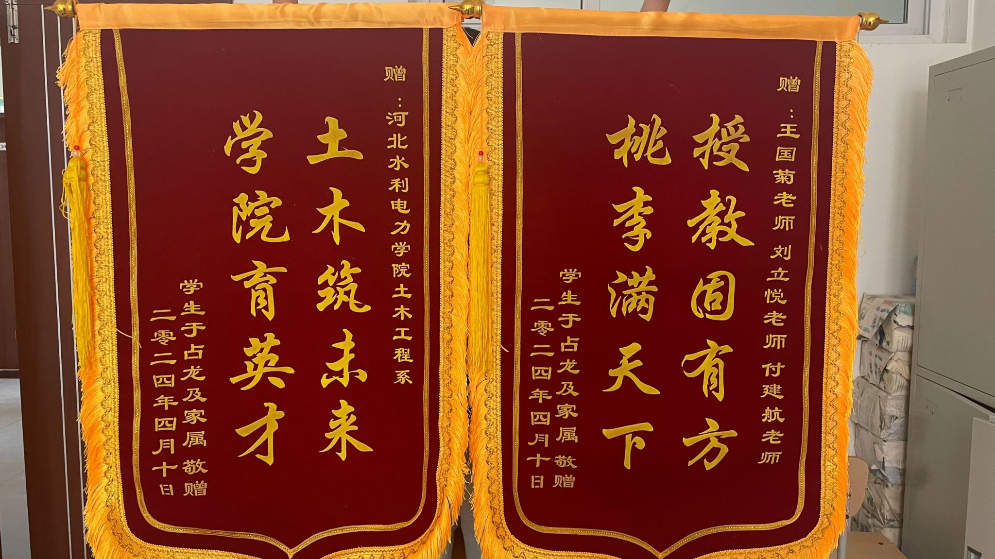 土木工程系党总支书记王诚杰、团委书记韩艳丽以及王国菊和付建航等教师接受了锦旗。王诚杰表示,学生的认可是对学校育人工作最大的鼓励,更是老师们今后的动力源泉,土木工程系将继续努力,为学生提供更好的教育教学环境,培养帮助更多学子成长成才。