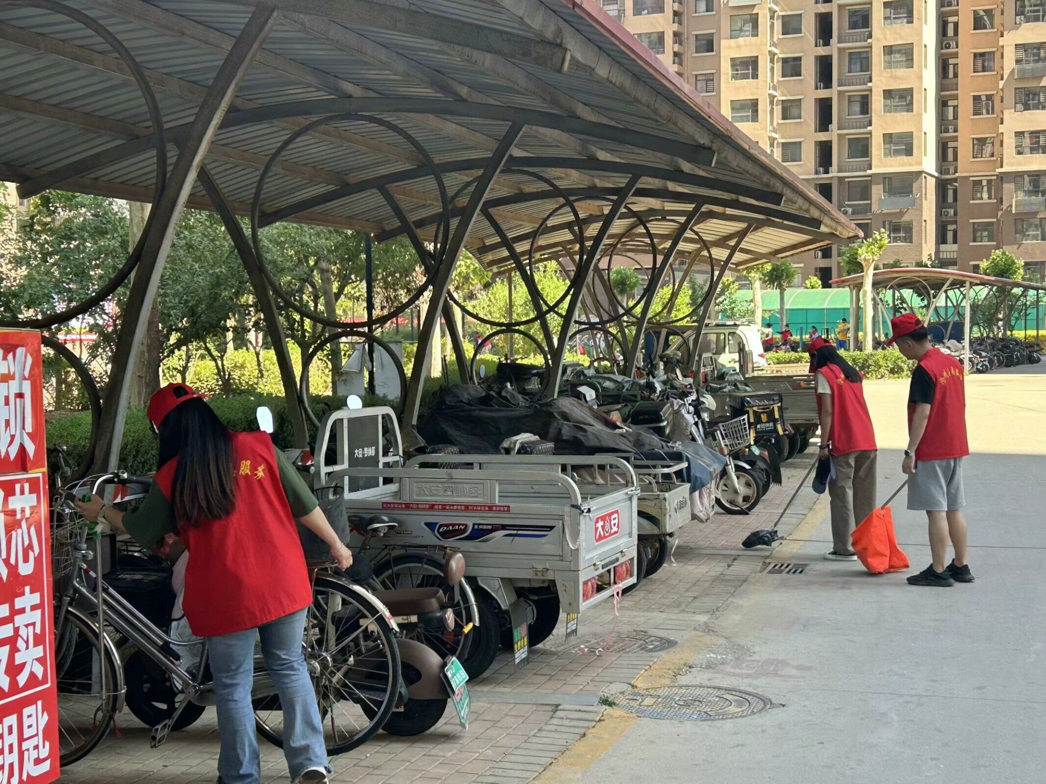在志愿服务活动中,学生党员们着装整齐,手持扫帚和垃圾袋,深入社区各个角落,对垃圾进行清理和分类,积极倡导居民养成良好卫生习惯,同时,他们还协助社区工作人员,整理并摆放好社区内的自行车,确保社区交通秩序和环境整洁。活动期间大家充分发挥了团结合作的精神,迅速清理了社区内的垃圾,使整个社区焕然一新。