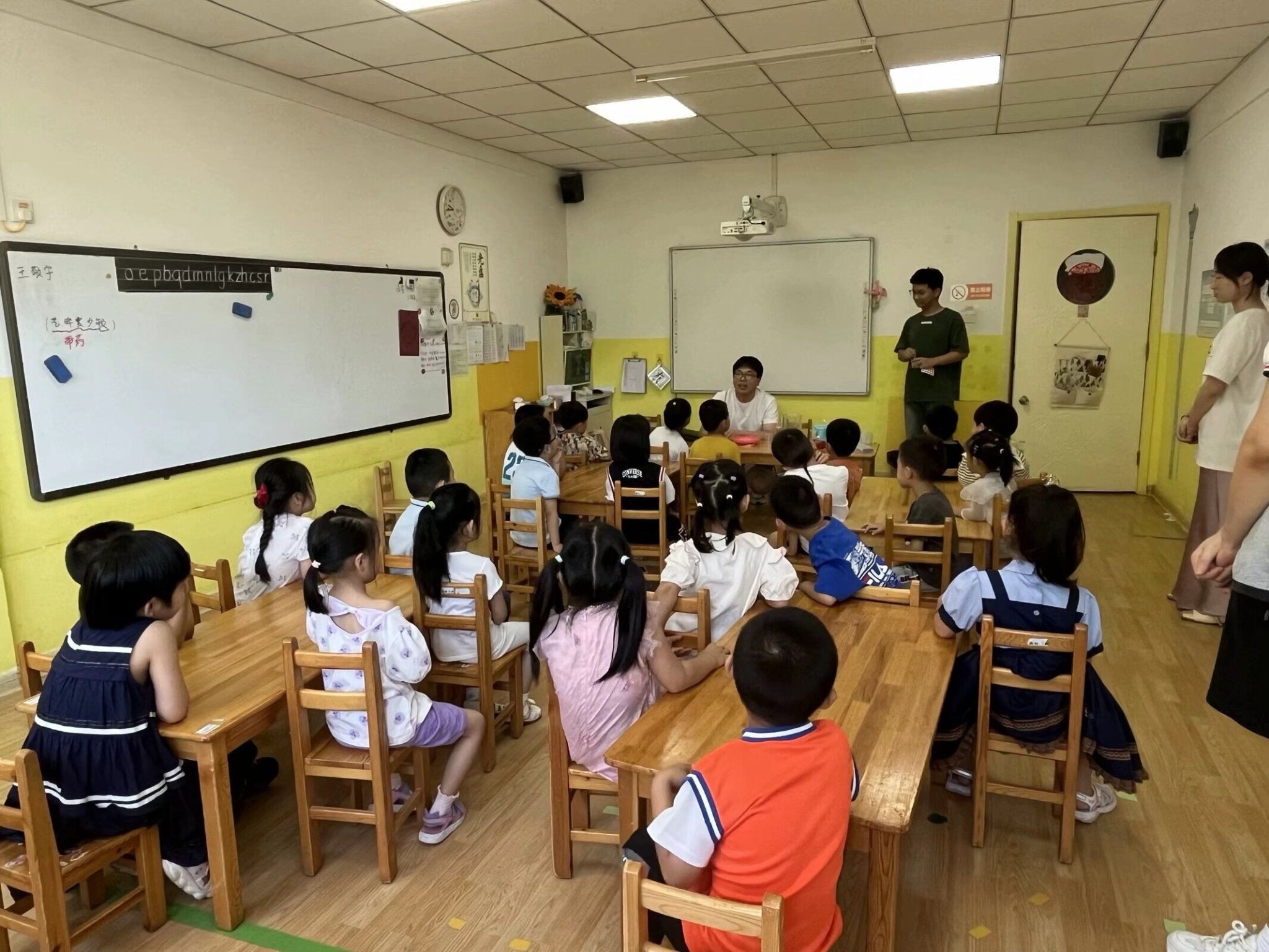 仪式结束后,在王园长的引领下,14名学生代表分别进入不同教室开展各式各样的实践活动,同学们通过生动的故事讲述、欢乐的互动游戏、有趣的手工制作、奇幻的物理科普、美妙的歌舞表演等形式同小朋友们一起互动,既增进了情感交流,又锻炼了同学们的组织协调能力。