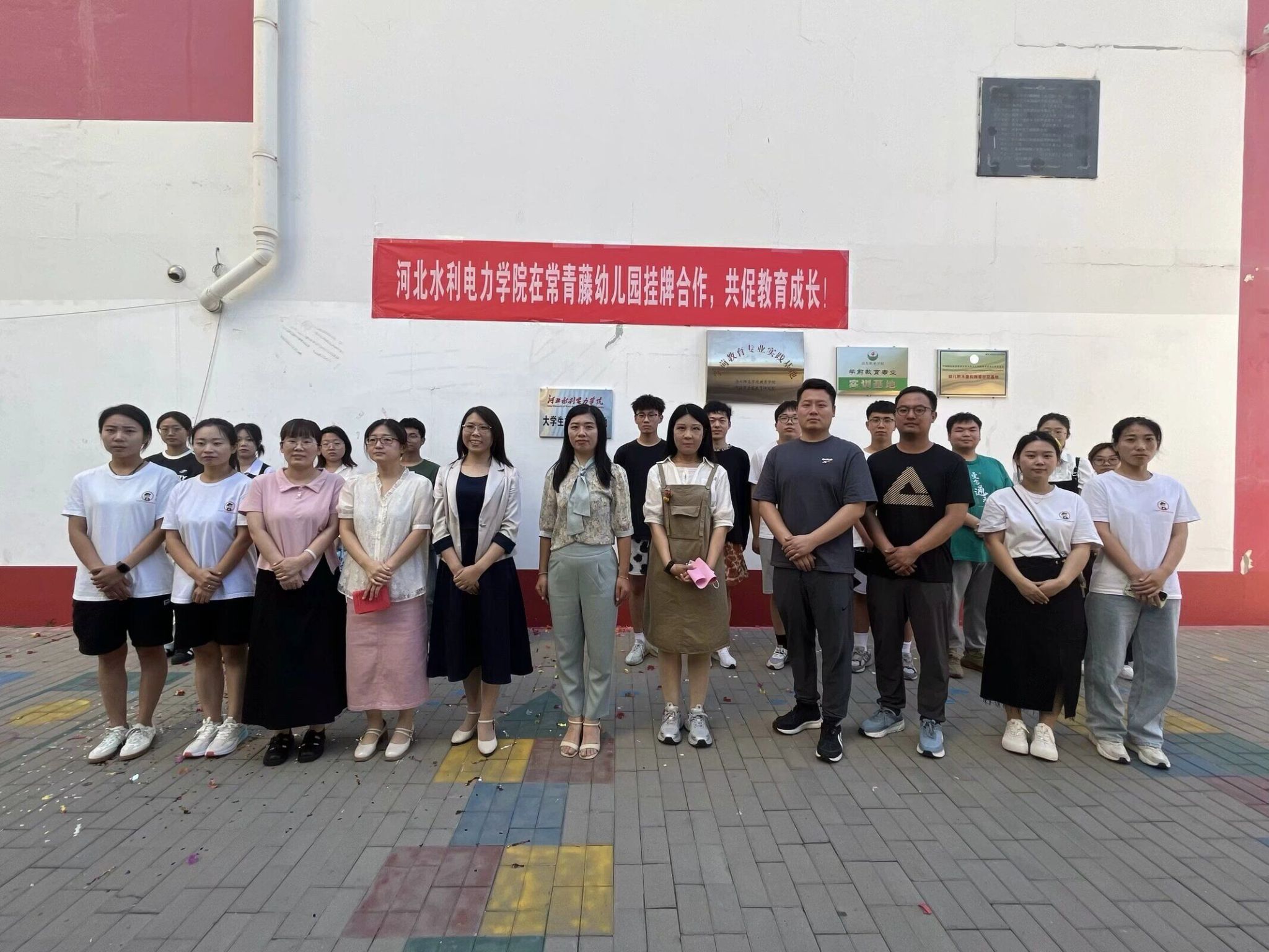 6月25日,电气自动化系前往常青藤幼儿园举行大学生社会实践基地挂牌仪式,本次活动由电气自动化系团委书记张宁带队,团委办老师董钊睿、刘福志、王静静及14名学生代表参加。