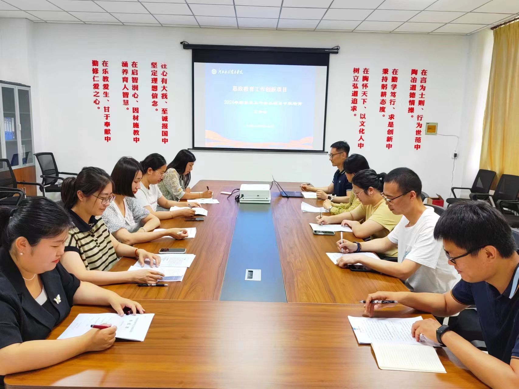 会上,各系辅导员对近年来本系特色工作的开展实施及进一步申报计划进行了总结汇报,涉及水利文化、党建领航、红色基因、美育教育、言语景观等多方面内容,贴近学生、贴近生活、贴近实际,充分体现了我校辅导员队伍工作的多样化内容和多元化场景。水利系辅导员刘晓延申报的《崇德尚学,求实致用——大学生思政教育与水利专业教育互通互融探索与实践》通过“一心双聚三点四度”工作机制,以水利专业教育融入思想政治教育活动为“切入点”,打造思想政治教育“有高度、有广度、有深度、有力度”四度空间。经贸系辅导员刘逸群申报的《以美启真、以美储善——“五育融合”视域下“美育+”浸润工程》以“美”为纽带,以美学元素为中介,将德智体美劳连结在一起。计算机系团委书记陈欢欢申报的《“党建领航·育人铸魂”——高校基层党建与复合型人才培养的创新实践》以特色党建为引领,将专业知识和社会需求相结合、社会实践和科技创新相结合、思政教育和日常生活相结合、学科竞赛和导师项目相结合促学生综合素质提升。