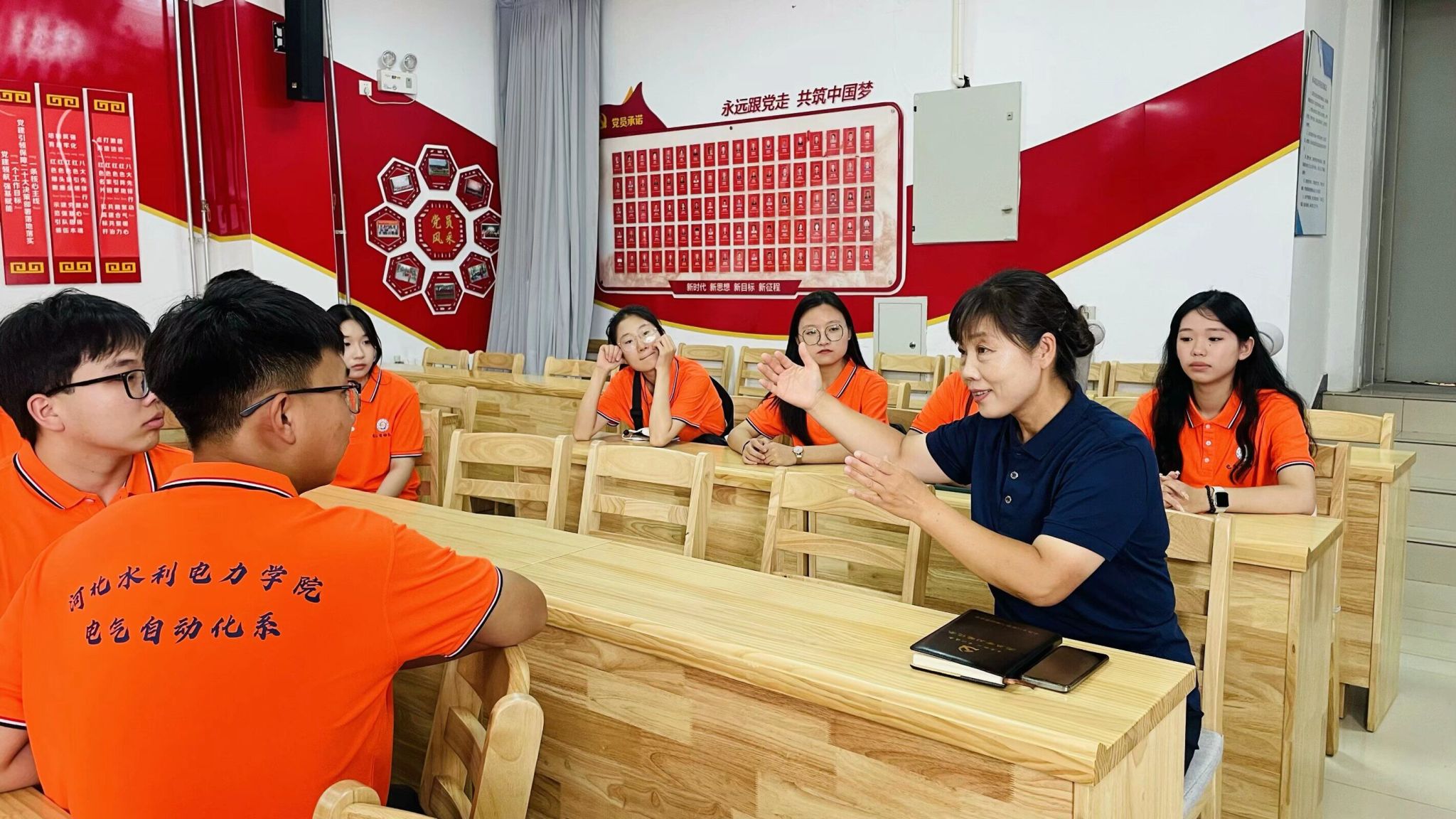 讲解员张彩云同志向大家讲述习近平总书记来第六埠村看望慰问的场景,总书记和村民们拉家常的温馨画面仿佛重现在大家眼前。大家深切感受到总书记无微不至、亲切温暖的关怀。同学们纷纷表示要牢记总书记嘱托,助力乡村振兴,争做新时代青年,用实际行动践行“请党放心,强国有我”。