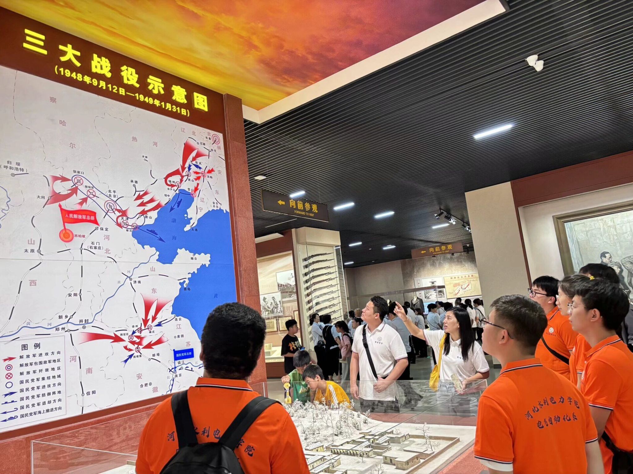 在天津平津战役纪念馆讲解员的讲解下,师生共同参观学习平津战役的全过程,深刻领会习近平总书记重要讲话精神,发扬革命传统,增强斗争精神,充分理解了平津战役的胜利对解放全中国的深远影响和重要意义。