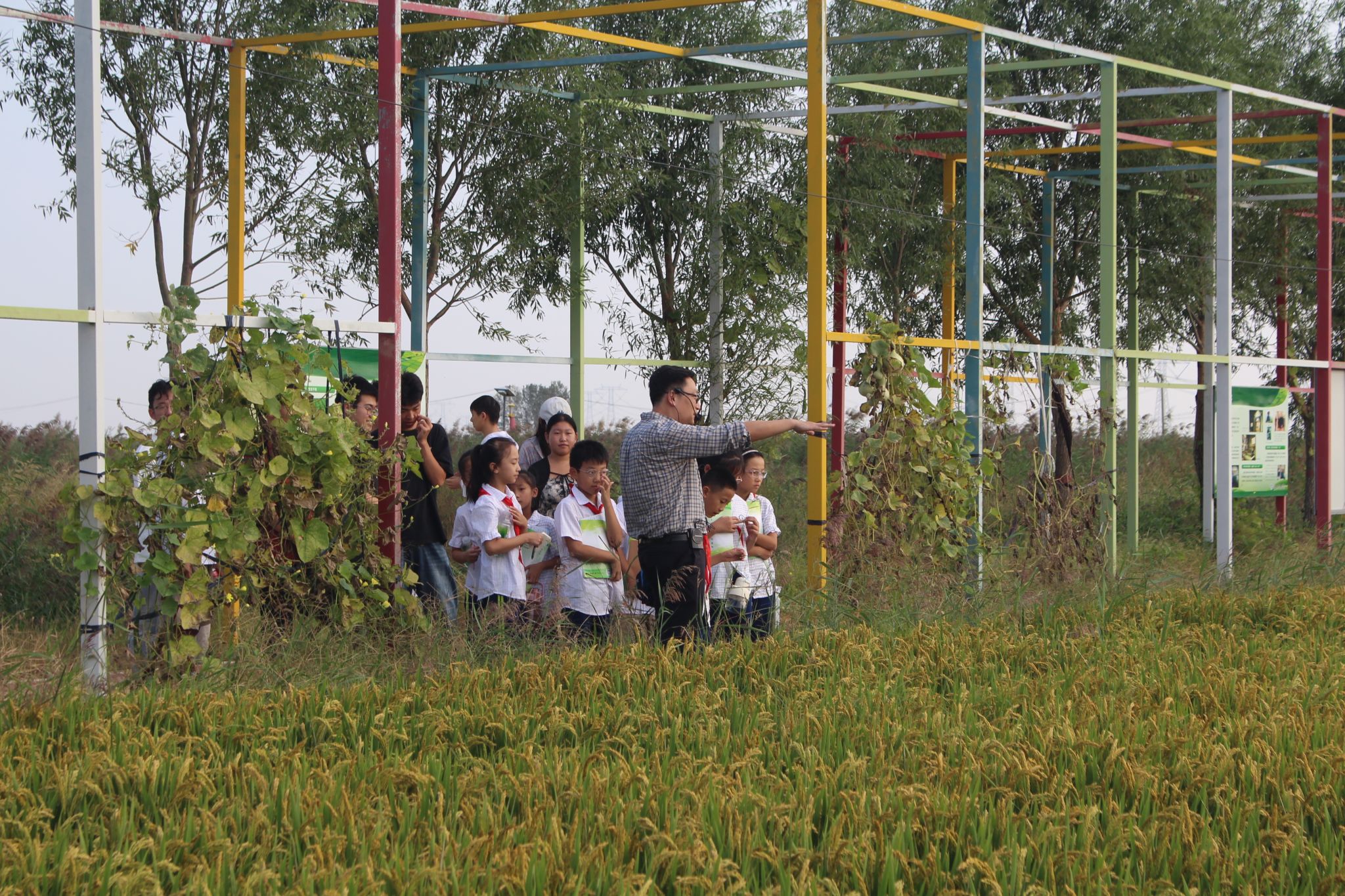 9月19日下午,在党政办副主任庞进的带领下,我校水利工程系大学生牵手上海路小学学生,一起到南堤村农业生态园探索农业与水利的奥秘。
