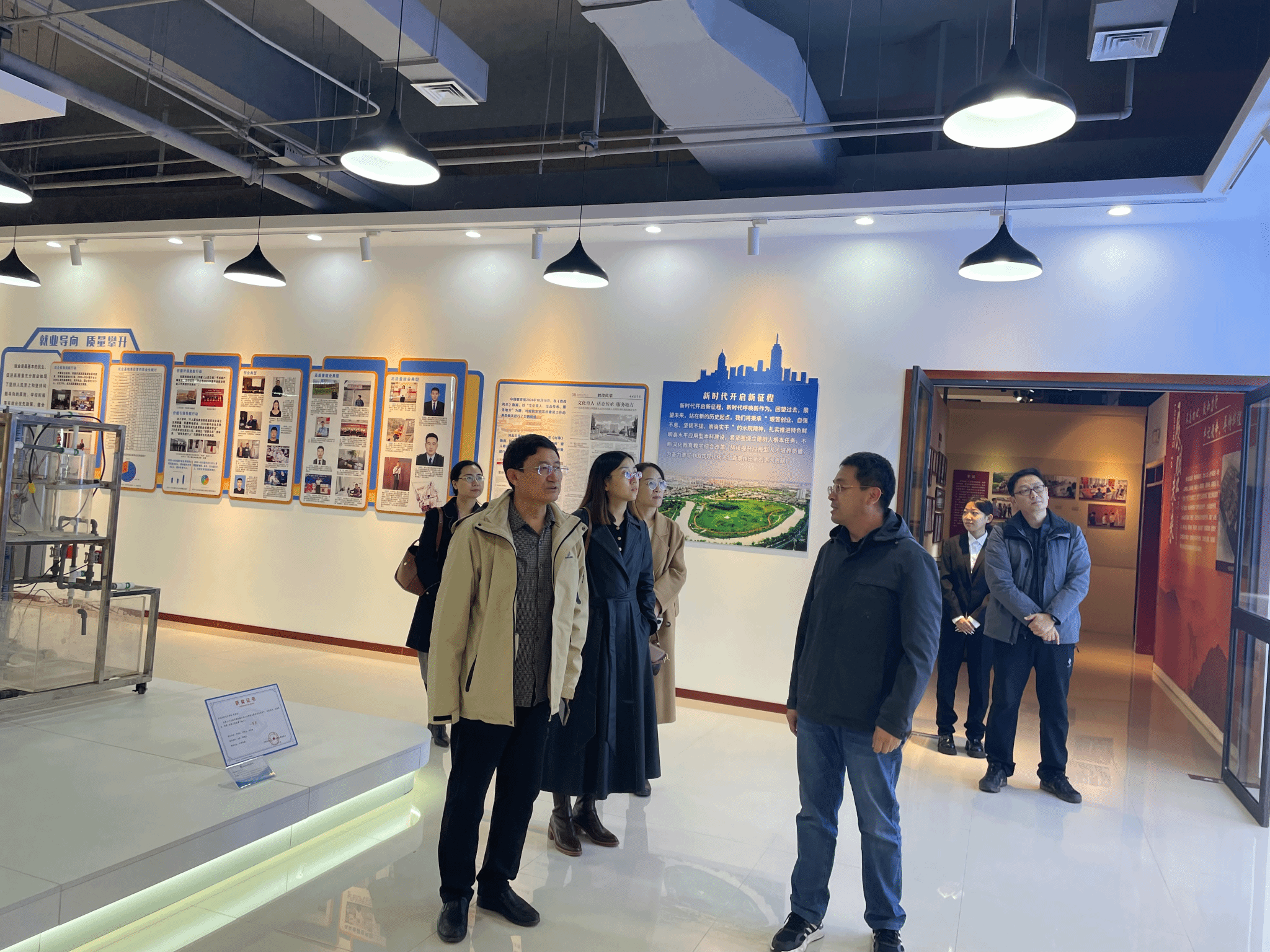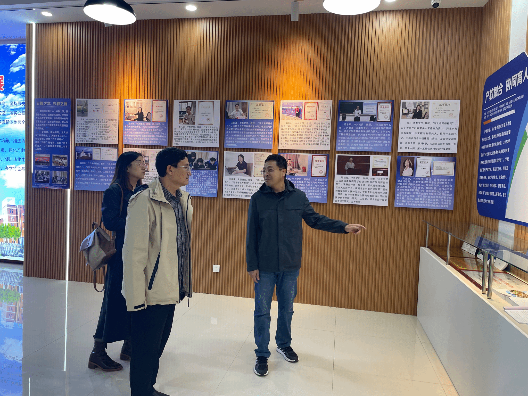 在随后的交流环节,双方就产教融合方面的经验进行了深入探讨与交流。张桂芳介绍了经济贸易系在产教融合方面的创新举措,如建立跨境电商产业学院、开设翰熹会计账道班等。王明吉分享了商学院在产教融合方面的举措,包括与华为、用友等多家知名企业共建实习实训基地以及开展校企合作项目的情况。此外,双方还就跨境电商专业和审计专业的建设进行了分组交流讨论。最后张桂芳等人陪同来访老师们参观了校史馆和教学成果展厅。