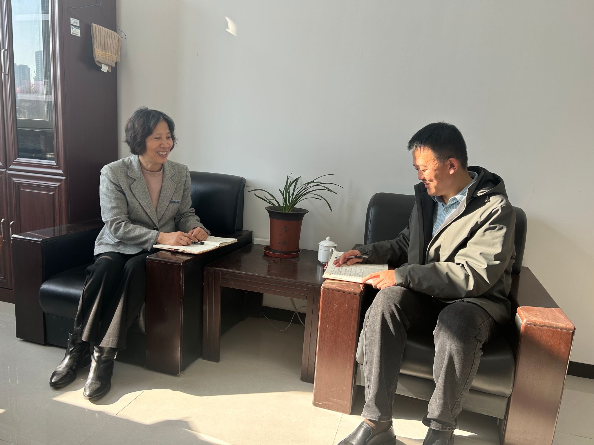 机械工程系党总支书记荆秀萍对渤海理工职业学院机电工程系党总支书记李文涛一行的到来表示热烈欢迎,并以“围绕中心抓党建,抓好党建促发展”为核心,从政治建设、思想建设、组织建设、制度建设、作风建设、党建工作与中心工作互融互促等方面分享了党建工作经验和做法。她指出,开展党建结对共建是贯彻落实习近平总书记关于党的建设的重要思想的具体举措,是构建“资源共享、优势互补、互相促进、共同提高”的党建工作新格局的积极探索。工作中要进一步在健全运行机制、发挥政治引领作用、提升师生思想政治工作质量方面加大力度,形成在认识上“同频共振”、资源上“互通共享”、经验上“互学互鉴”,真正实现“1+1>2”的合力效应。希望通过党建结对共建,双方在完善制度建设、夯实基层组织建设、创建党建特色品牌等方面都得到更好提升,切实将党的政治优势、组织优势转化为推动高质量发展的强大动力,共同为我省教育事业发展贡献智慧与力量。