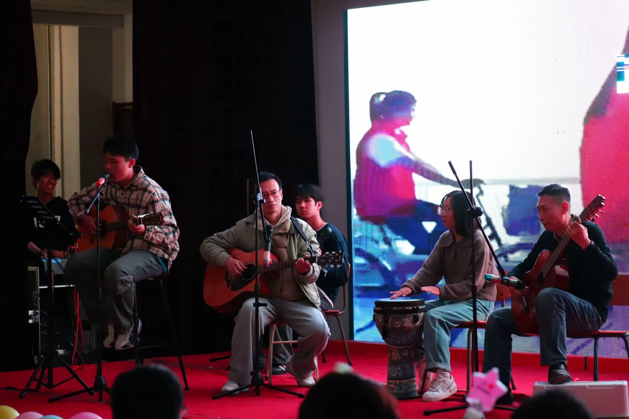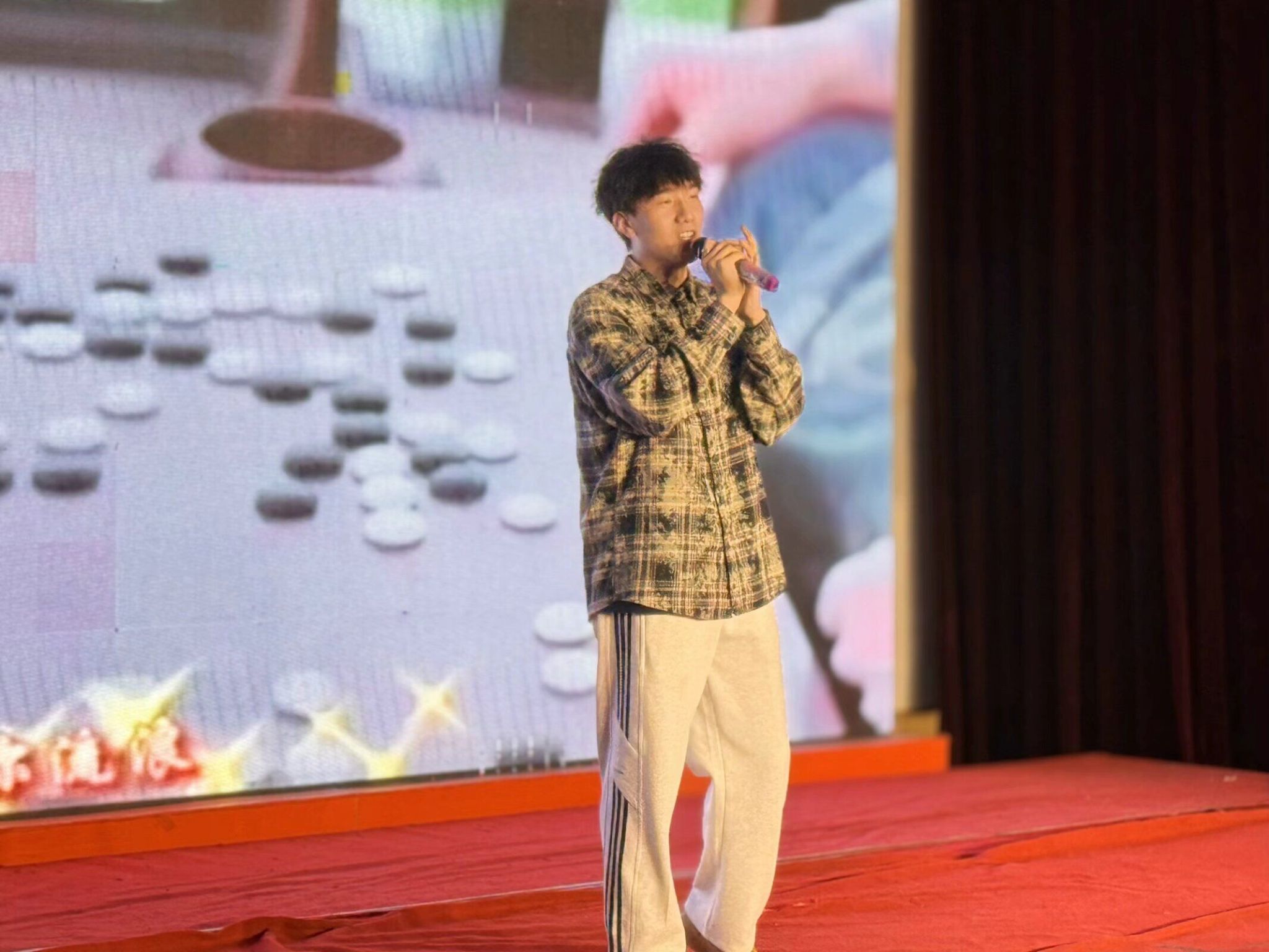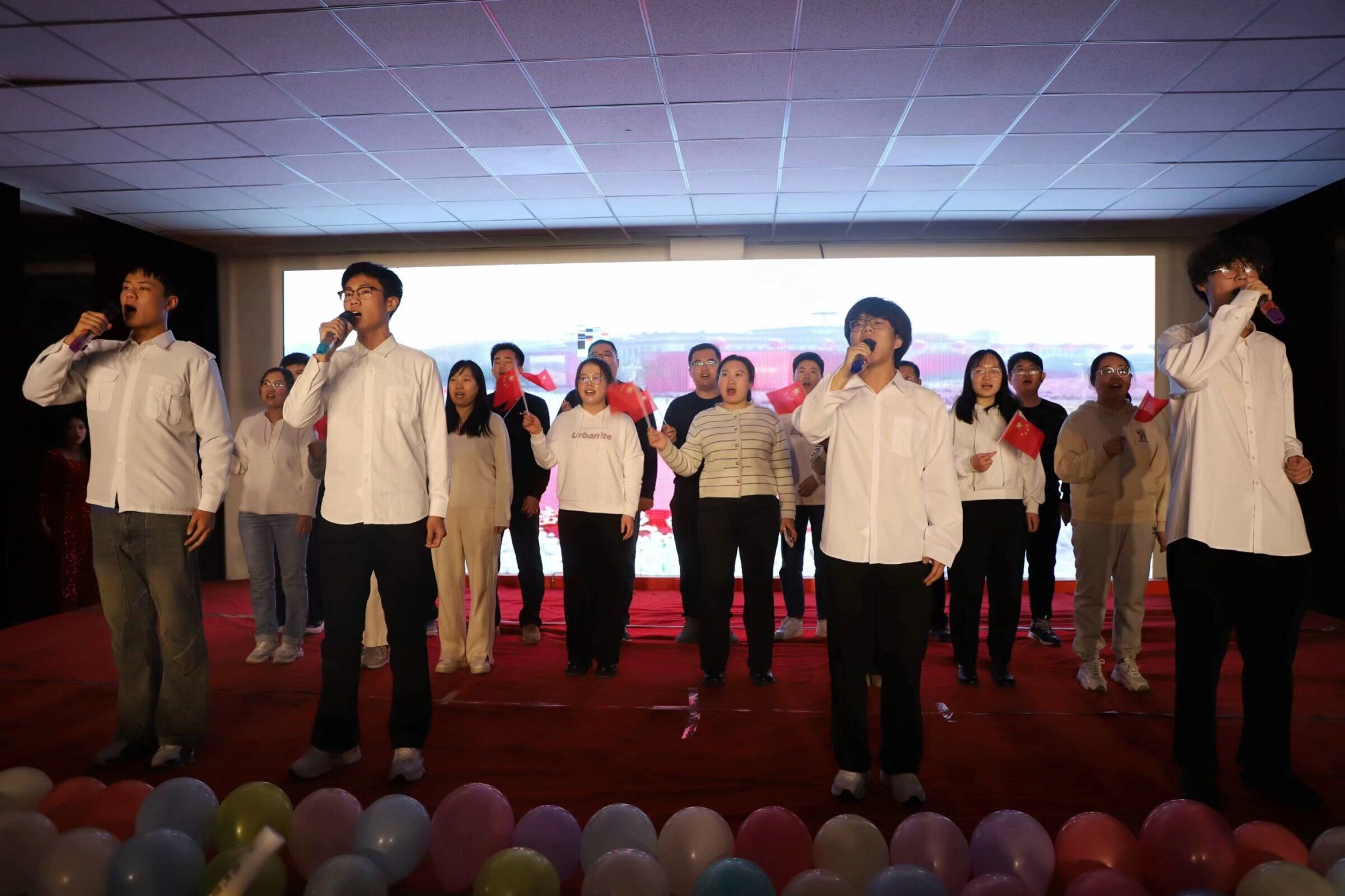 舞台上,老师和同学们都全情投入,现场氛围活跃欢快,充满了欢声笑语。活力满满的舞者们用整齐利落的动作展现着青春的朝气蓬勃;同学们用清澈的嗓音为师生演绎着动听的歌曲,台下观众跟随音乐旋律鼓掌喝彩;国防后备营的表演利落干脆,赢得观众们鼓掌叫好;幽默诙谐的方言配音给观众带来欢乐;吉他演奏、钢琴连弹、书法表演等更是为晚会增添了别样的色彩。中场游戏互动环节也是趣味横生,猜灯谜、现场抽奖等深得观众喜爱。电气自动化系教师姜久超、刘暐、常硕以及全体青年教师也献上了精彩的表演,最后的大合唱环节,全场师生齐声歌唱祖国,更是将现场氛围拉向高潮。
