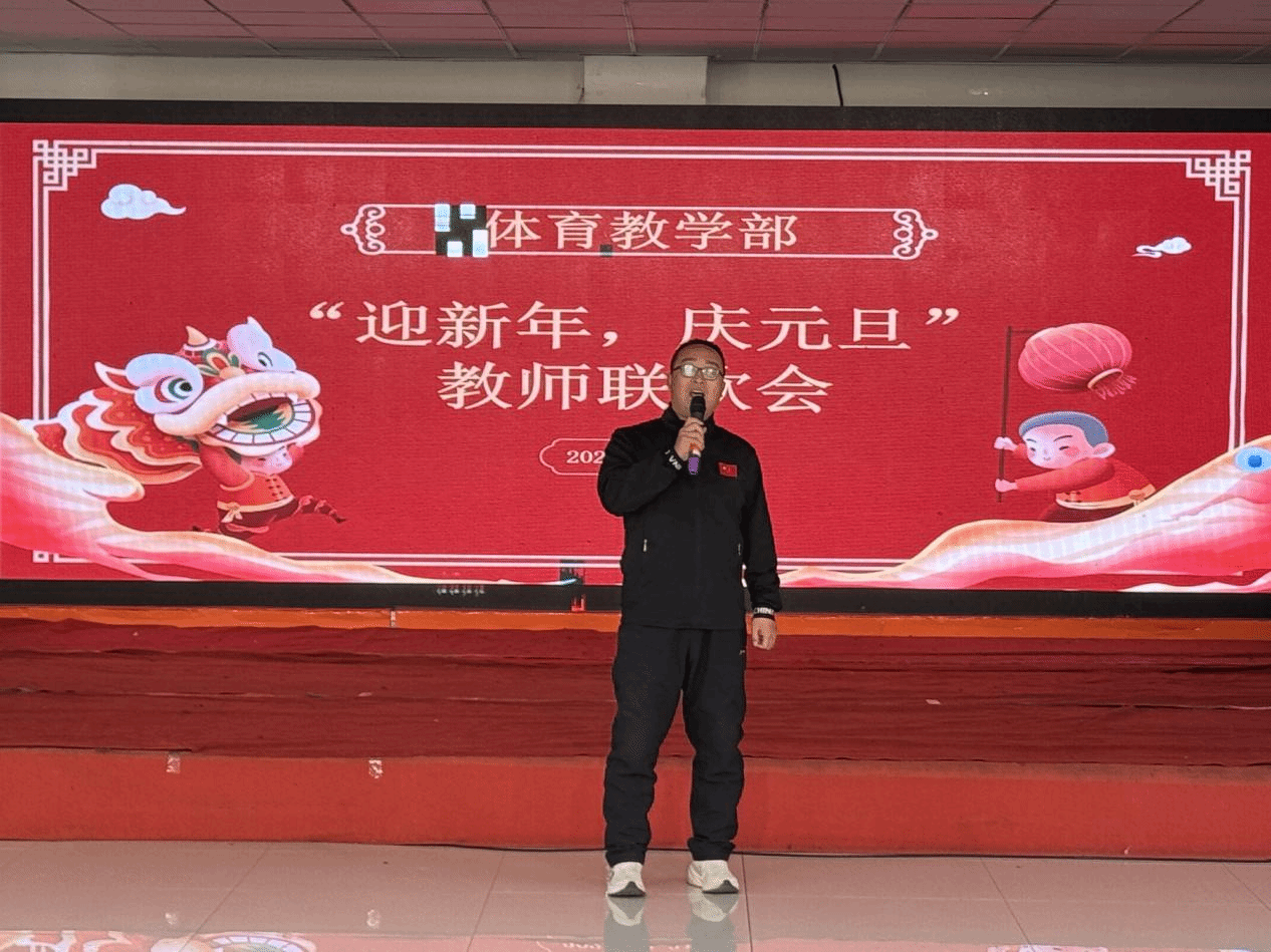 崔立功在联欢会上发表讲话,他首先对体育教学部一年来的工作给予了充分肯定,并向全体教师致以新年的祝福。他指出,过去一年,体育教学部在教学、科研、赛事组织以及学生体育素养提升等方面均取得了显著成绩,这不仅是全体教师辛勤付出的结晶,更是学校体育事业蓬勃发展的有力见证,充分彰显了体育教学部在学校教育体系中的重要作用和价值。他勉励全体教师,在新的一年里继续秉持团结奋进之精神,砥砺前行,勇攀高峰,以更加饱满的热情和昂扬的斗志投身于学校体育教育事业,为培育德智体美劳全面发展的时代新人,为推动学校体育事业高质量发展贡献更多智慧和力量。