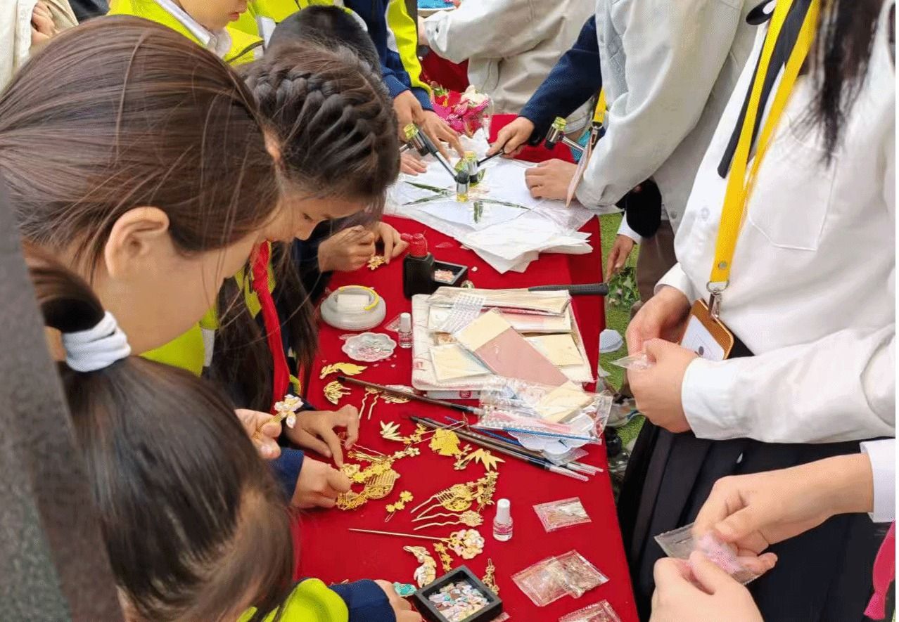 两小时的沉浸体验中,非遗技艺从书本文字转化为可触可感的实物:温热的拓片、流光溢彩的螺钿、草木染香的布袋、春意盎然的团扇,还有墨香犹存的书签。孩子们在动手实践中体悟匠心精神,真切领会了“劳动创造美”的深刻内涵。