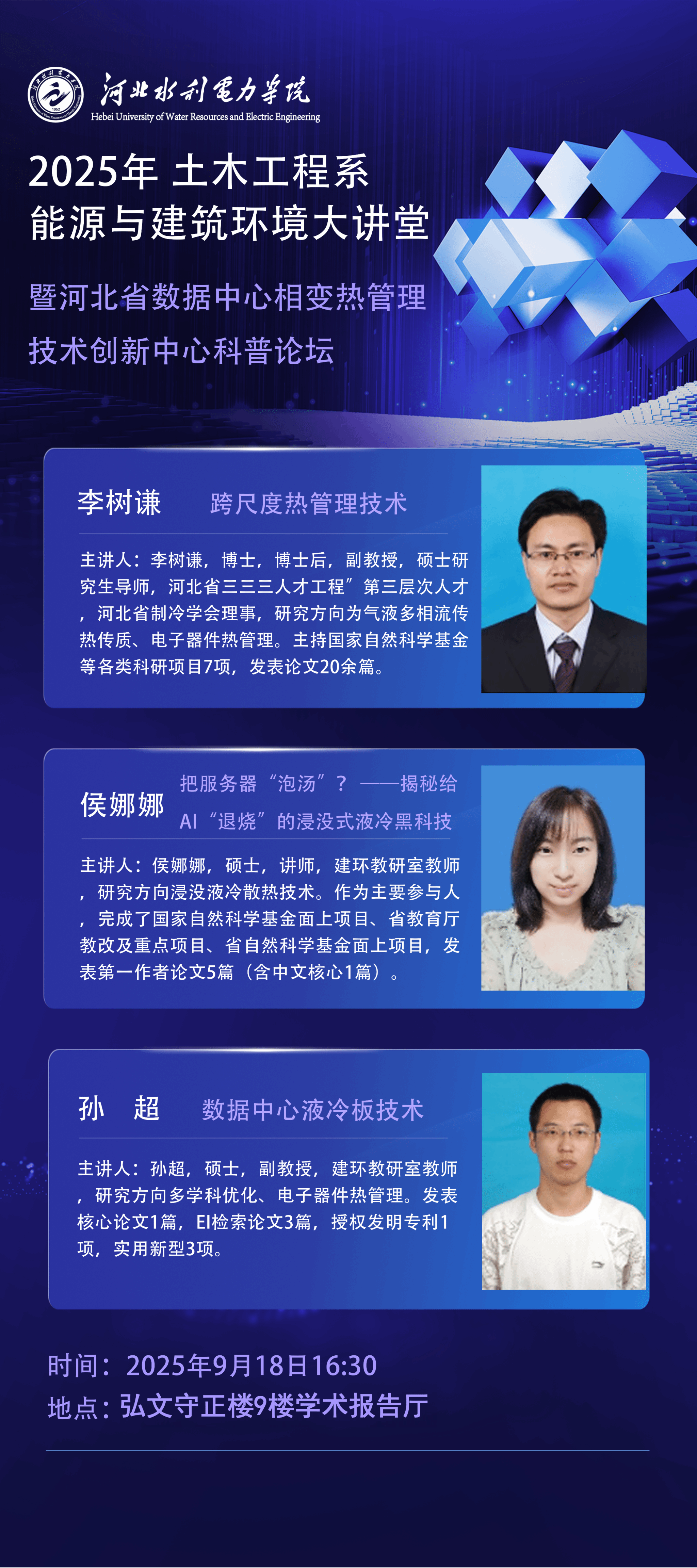 【学术活动】土木工程系2025年能源与建筑环境大讲堂暨河北省数据中心相变热管理技术创新中心科普论坛